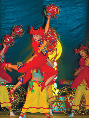 浙江余杭民间艺术家的滚灯表演令人啧啧称奇