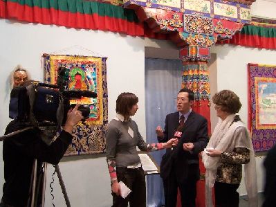 发布人:dengyp 更新时间:2009/2/13 15:46:49 点击数:763 2月10日,由中国驻俄罗斯使馆文化处、俄罗斯弗拉基米尔•苏兹达里国家博物馆和俄罗斯国际生态公司共同举办的中国“神奇的西藏”艺术展在俄罗斯弗拉基米尔市的弗拉基米尔•苏兹达里国家博物馆开幕。中国驻俄罗斯使馆文化处参赞迟润林、俄弗拉基米尔市议长克鲁克里科夫、弗拉基米尔州、市各界人士百余人参加了开幕式。