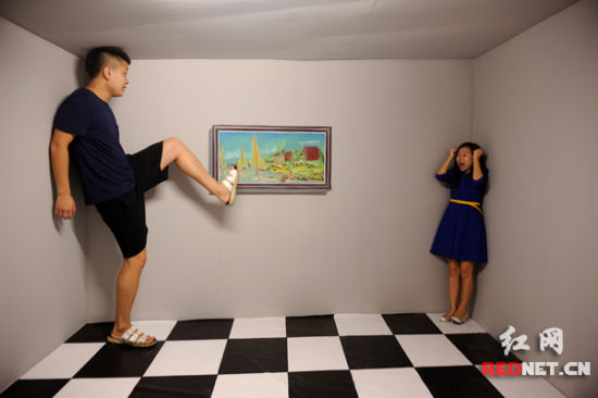 一位现场工作人员向红网记者介绍,3D魔幻艺术展不仅可以看,还可以玩。观众可以通过巧妙的站位,进入3D营造的立体空间,出现真人和画面融为一体的奇特效果,让人看了足够产生“以假乱真”的感觉。这位工作人员还提醒即将前来参观的游客千万不要忘记携带自己的相机,好记录自己置身魔幻3D空间中的精彩时刻。