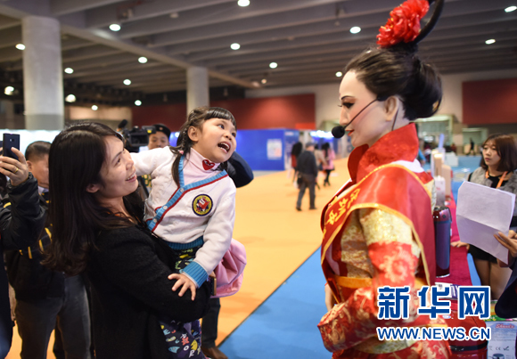 深圳中科世界机器人公司“武媚娘”迎宾机器人(新华社卢汉欣记者摄)