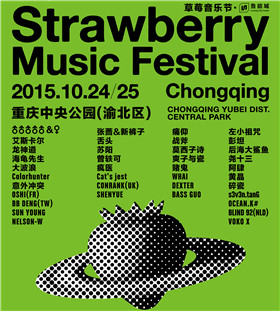 10月24日-25日,重庆中央公园(渝北区),2015鲁能地产·重庆草莓音乐节首次登陆山城重庆。千呼万唤,阵容来了!