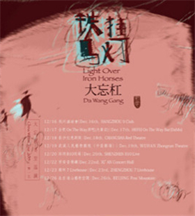 2015年12月冬至圣诞前后,铁马撼地,寒冬挂灯,大忘杠乐队即将在武汉、长沙、西安,深圳、杭州等城市再次开启全国巡演,敬请支持关注!
